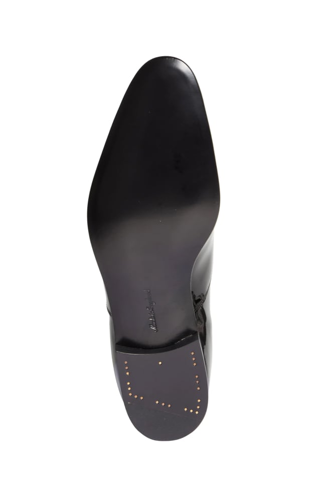 Add an elegant flourish to a formal look with this tapered-toe oxford crafted in the UK of patent leather and finished with grosgrain laces.